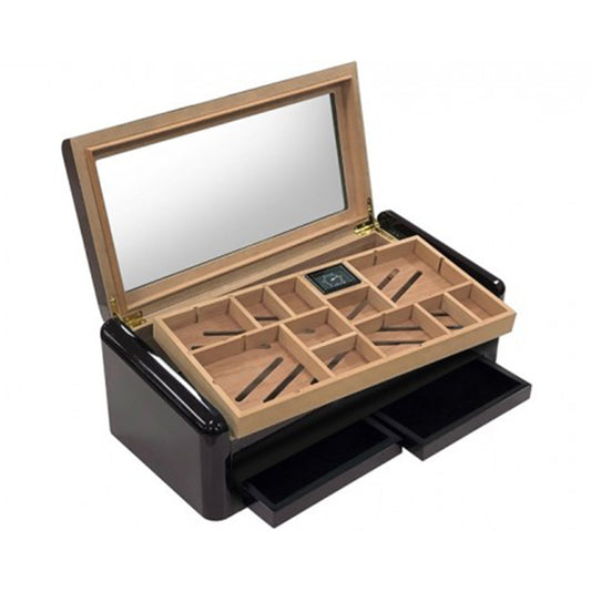 Balthazar - High Lacquer Jet Black Humidor w/ Divider System & Double Drawers (150 cigars)