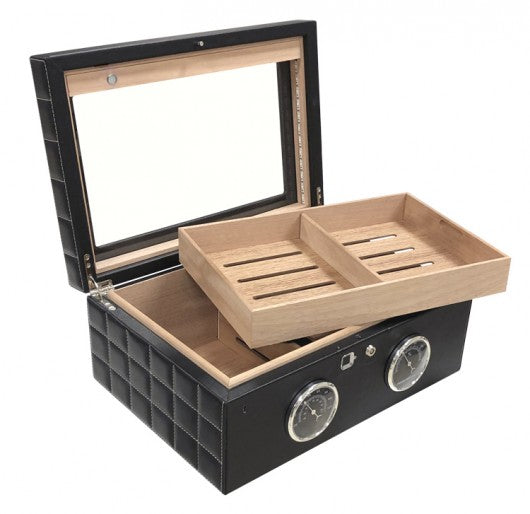 Grand Prix - Black Humidor w/ Finger Print Touch Lock, Dual Gauges & LED Lighting (120 cigars)