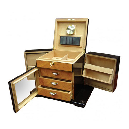 Balthazar - High Lacquer Jet Black Humidor w/ Divider System & Double Drawers (150 cigars)