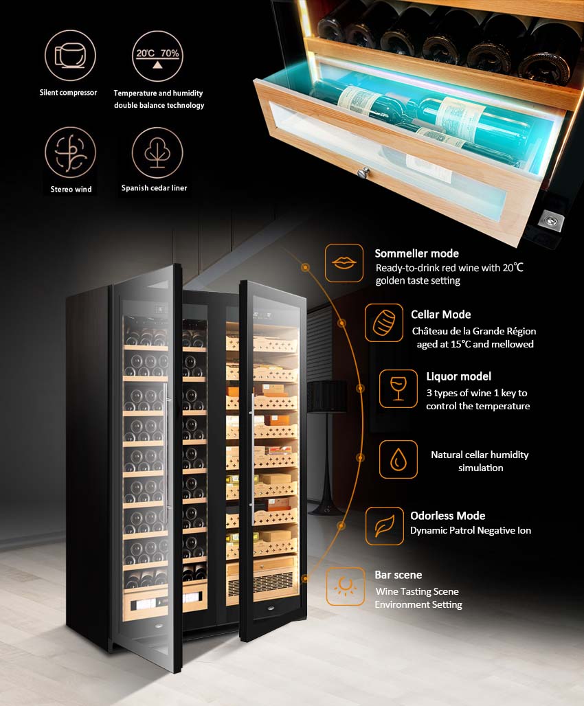 Raching CD1200 - Smart Cigar Humidor & Wine Cooler (1600 cigars / 130 bottles)