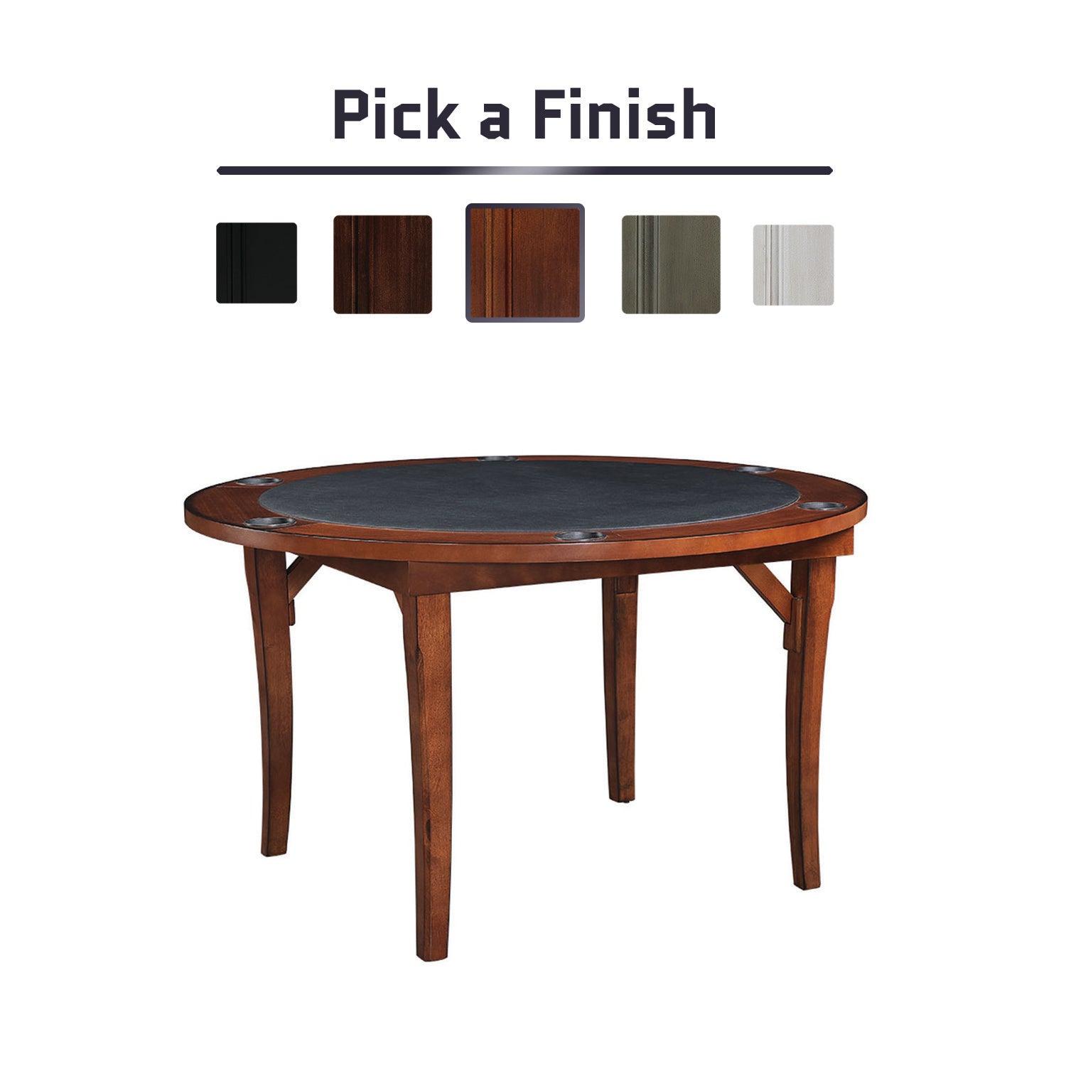 The folding card table is the perfect option for the occasional player. Available in one of our 6 signature materials finishes, this table offers all of the beauty and functionality of our regular tables, but has the unique ability to fold up for storage when it's not game night. A great value choice. This item is stocked in warehouse for prompt shipping and minimal process time (1–2 business days).Features