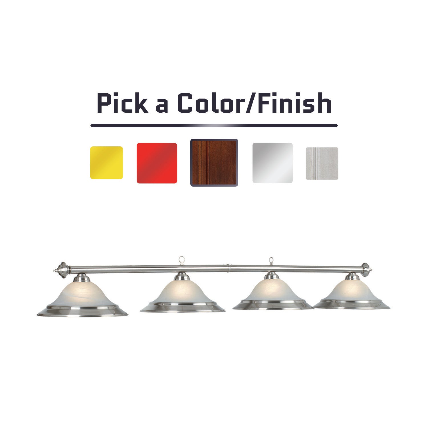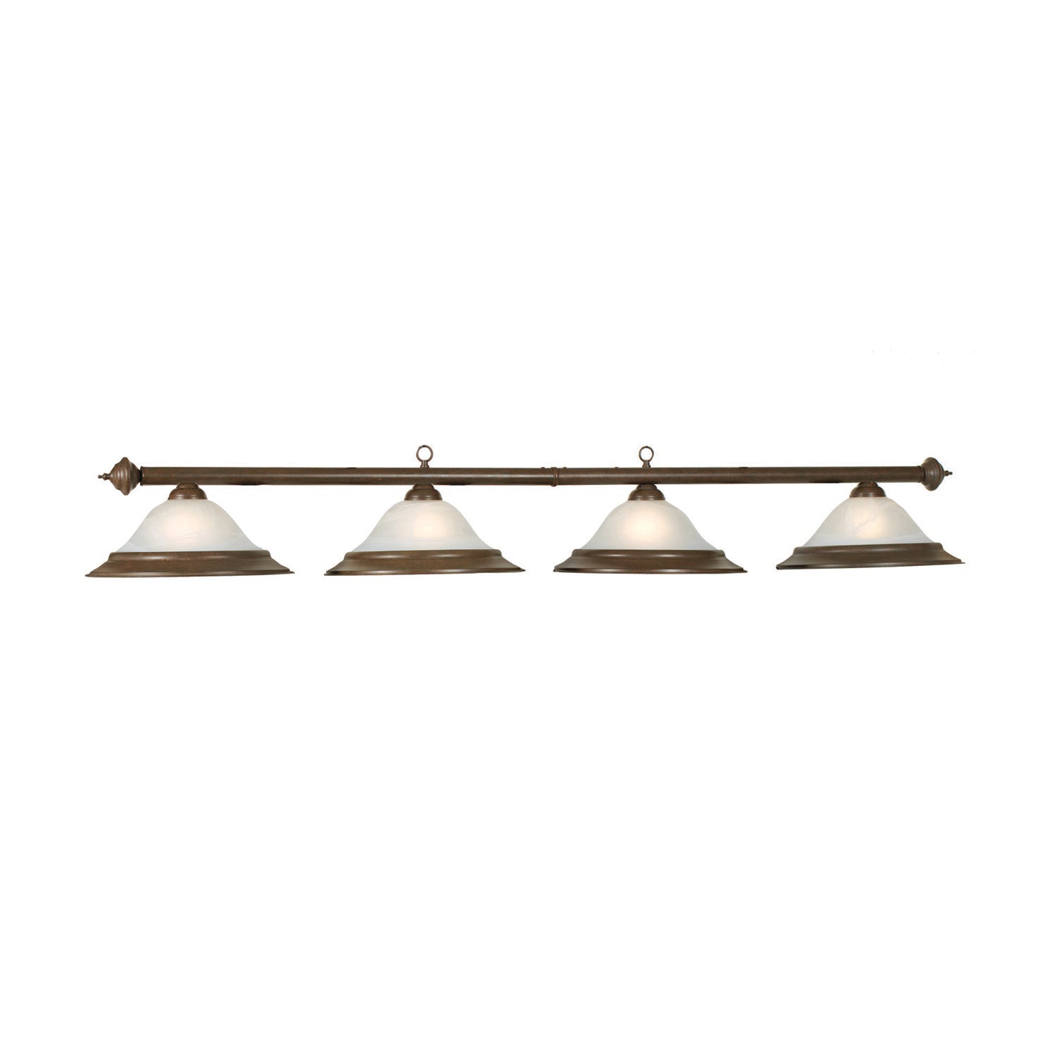 Perfectly illuminate your next game of pool with this four-light billiard pendant, which boasts glass shades with metal rims set on a bar available in different material finishes. This item is stocked in warehouse for prompt shipping and minimal process time (1–2 business days).Features