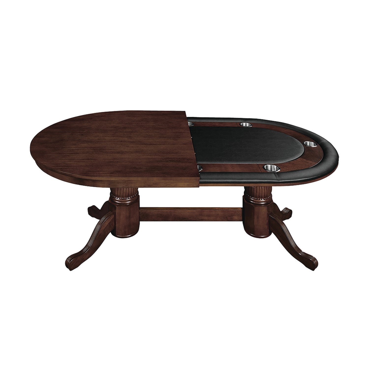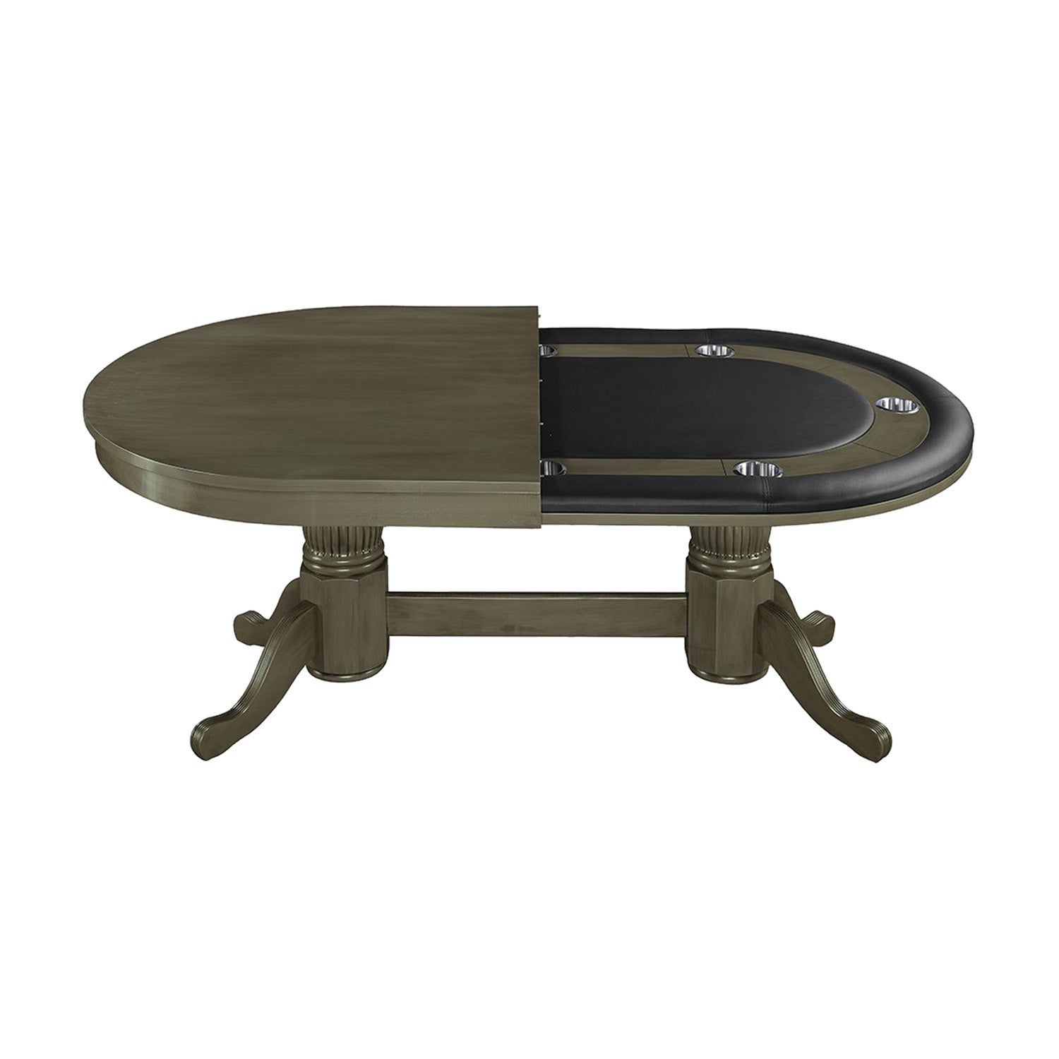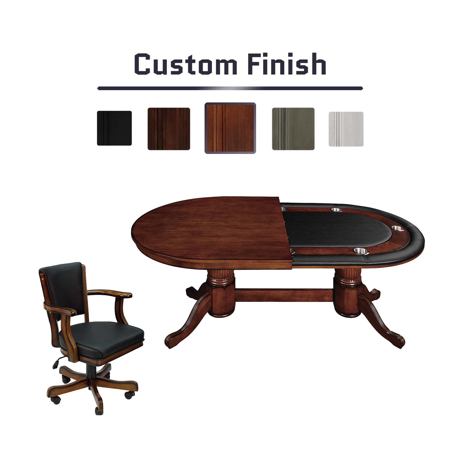 Invite friends to indulge in your favorite card game, gathered around this solid wood card table with padded playing surface. Matching swivel chairs and a dinning top are included in this set so you can effortlessly convert your game night into the perfect dinning event. Available in our 6 signature finishes! This item is stocked in warehouse for prompt shipping and minimal process time (1–2 business days).Features