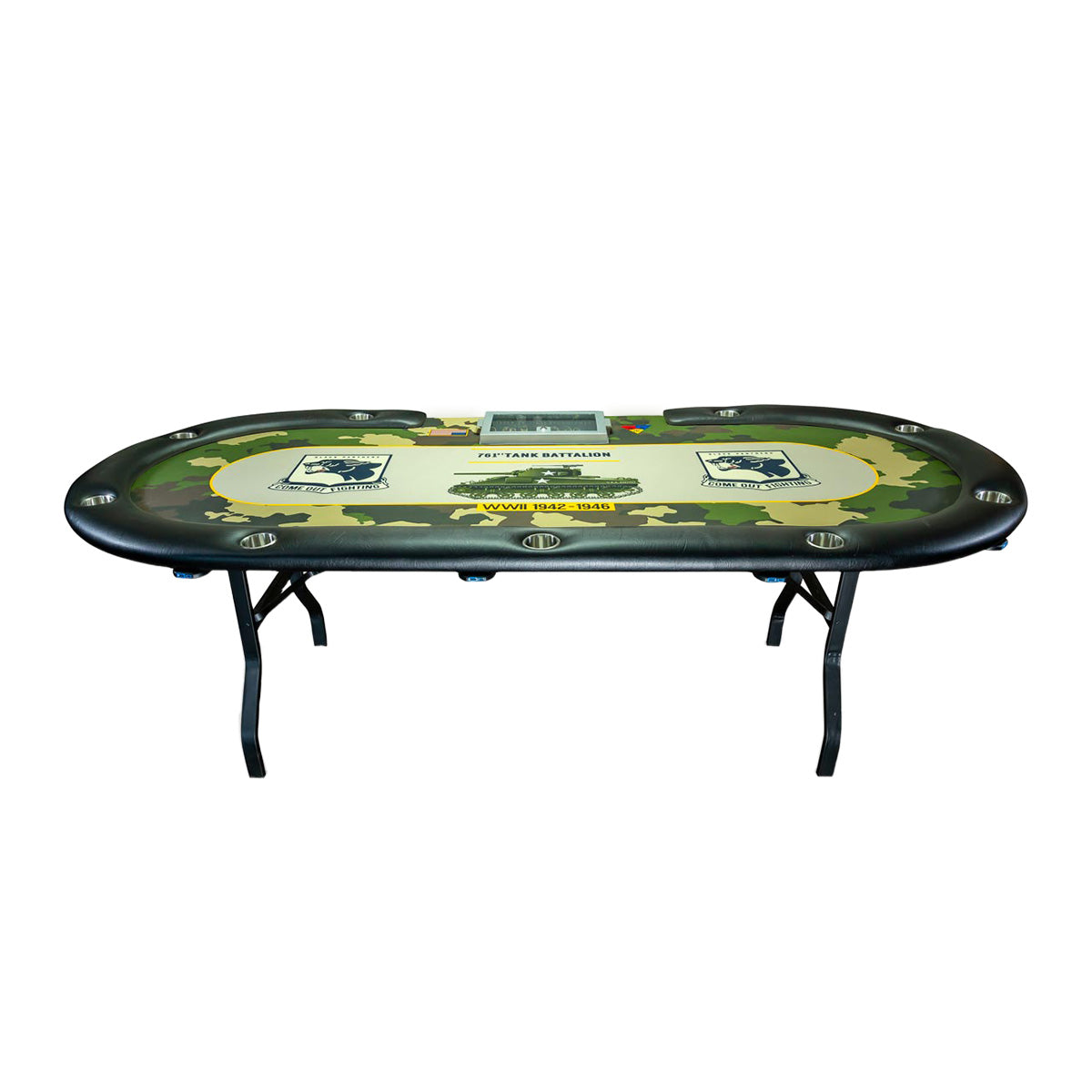 Create your fully customized premium folding poker table. Made in America and designed for poker leagues, social clubs, casino night parties, and circuit tournament play. And when you're done playing, you can easily fold up the table and store it away. No hassle, no fuss.