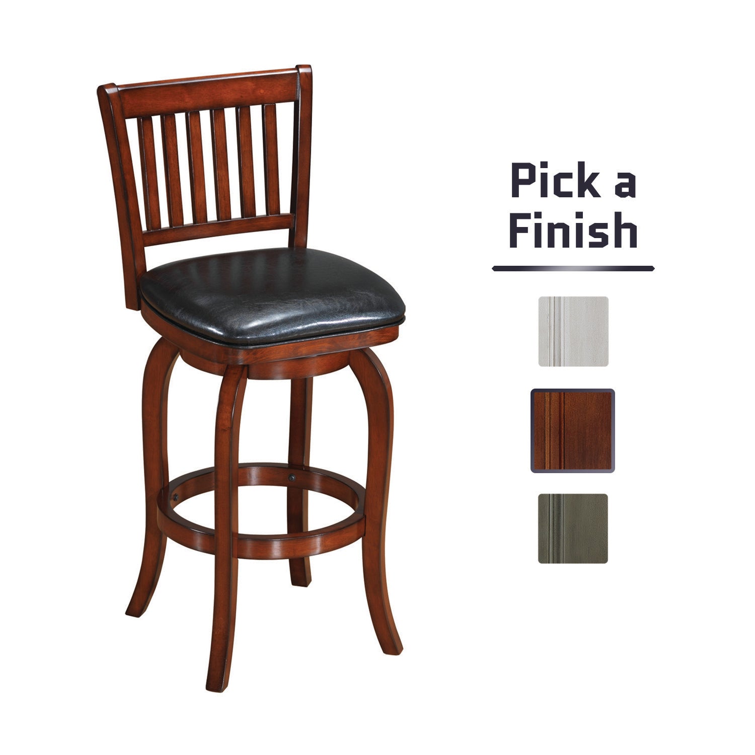 A slatted back and padded seat create a traditional look with plenty of comfort to complement this premium barstool with a square seat. Available in 6 material finishes! This item is stocked in warehouse for prompt shipping and minimal process time (1–2 business days).Features