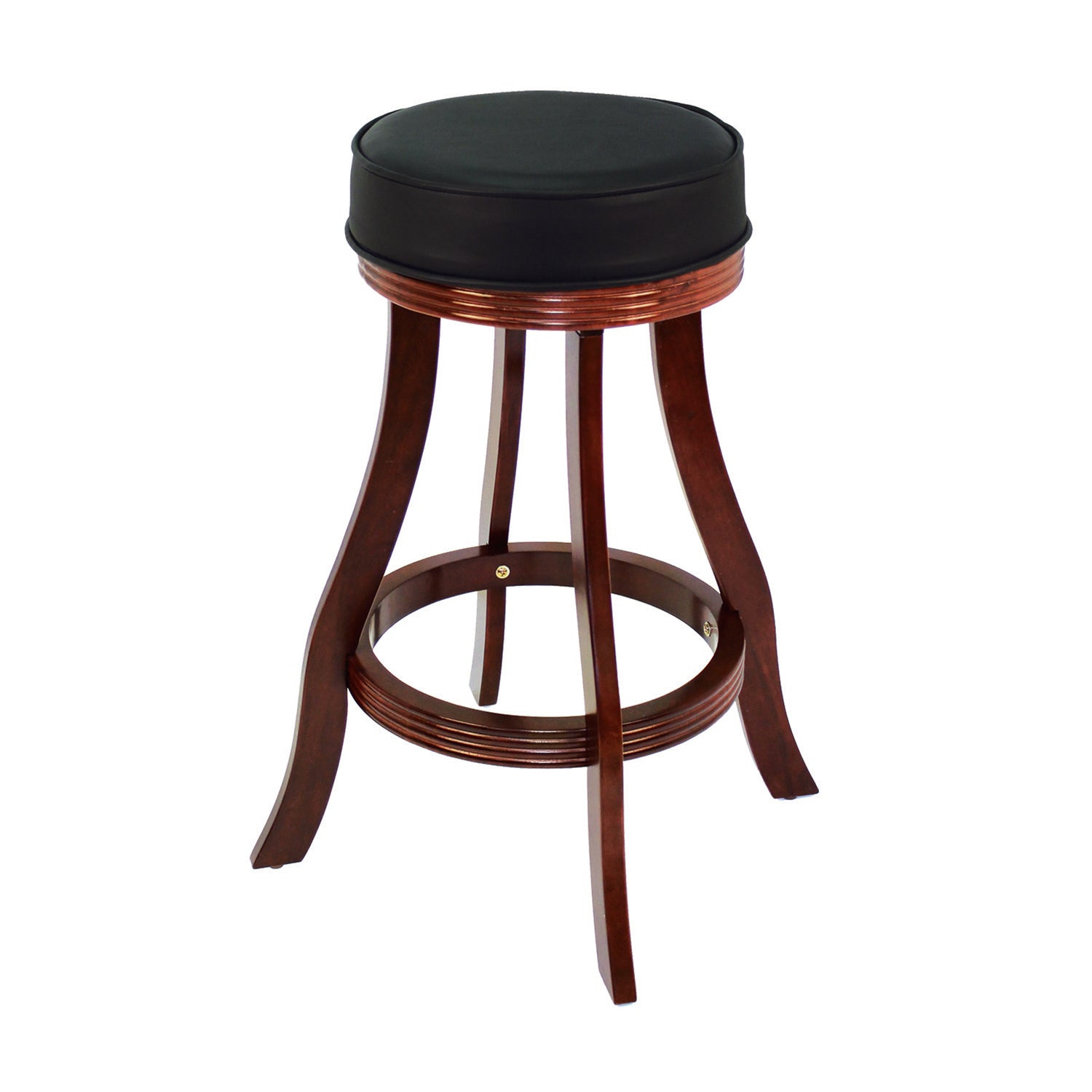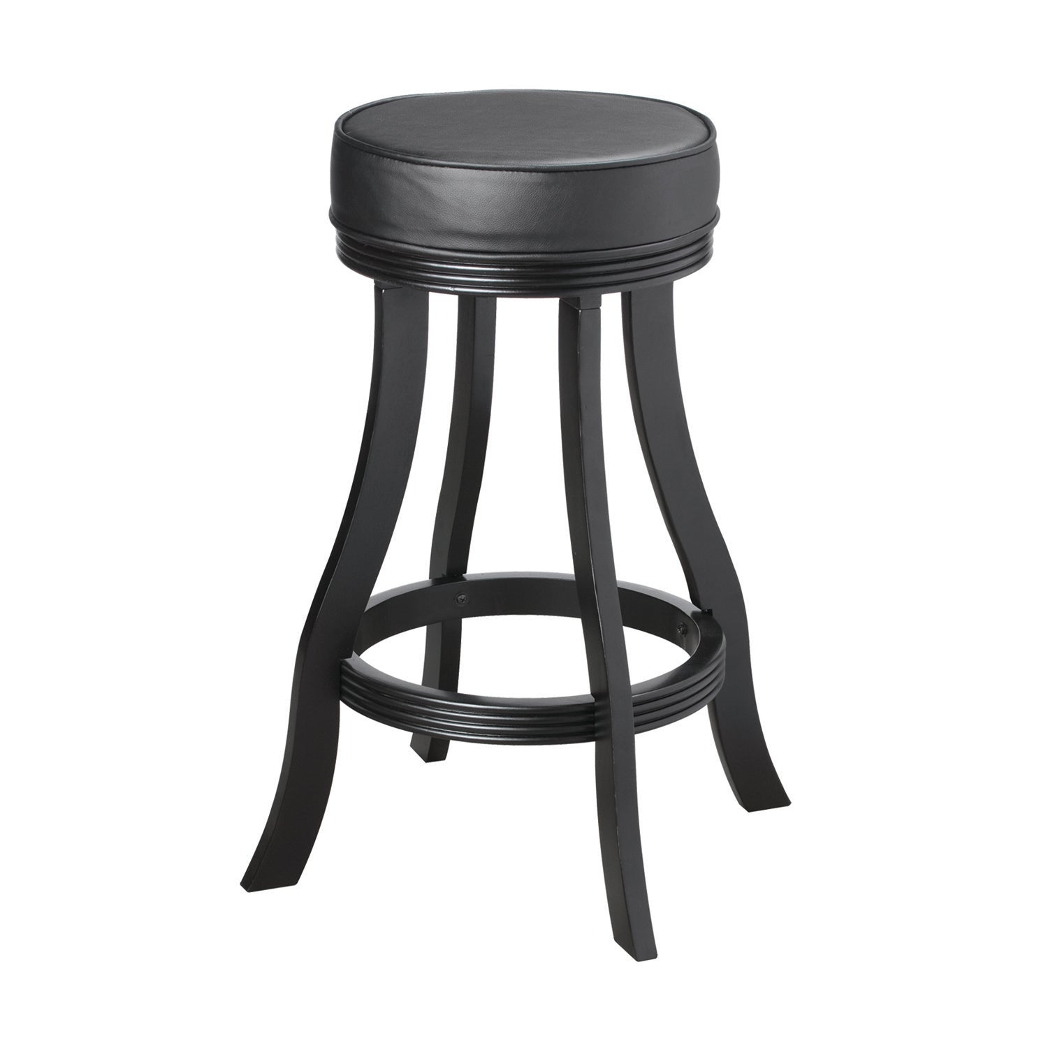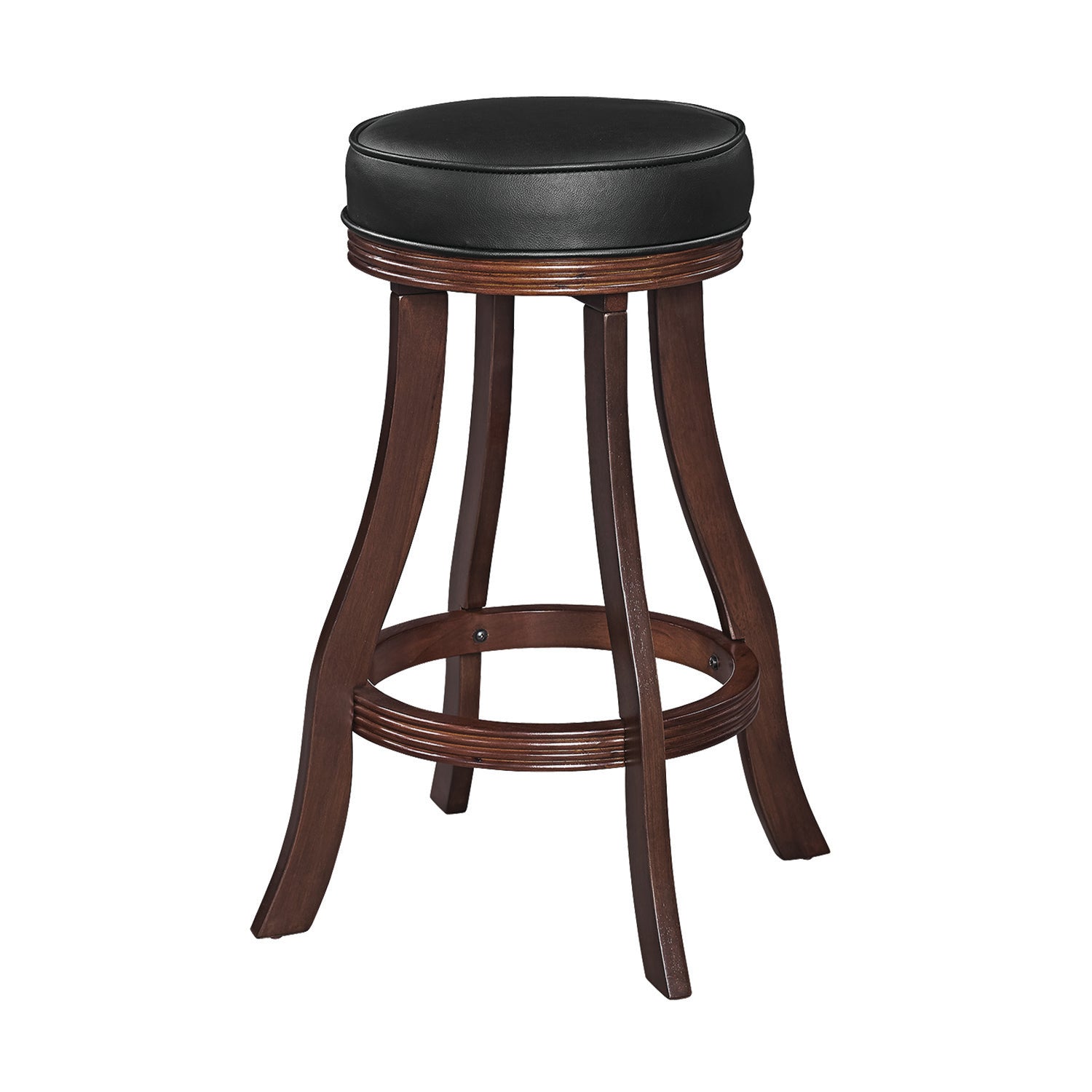 Simple and elegant, this backless barstool delivers exceptional seating to a pub table or gaming venue. A stylish look for the kitchen or entertainment room, this barstool features a round, padded vinyl seat with no back for versatility and traditional appeal. The base is crafted from solid wood with a premium finish, and features a footrest that circles all four legs. The legs features a slight curvature that adds dimension and visual appeal. Available in 6 material finishes! This item is stocked in warehouse for prompt shipping and minimal process time (1–2 business days).Features