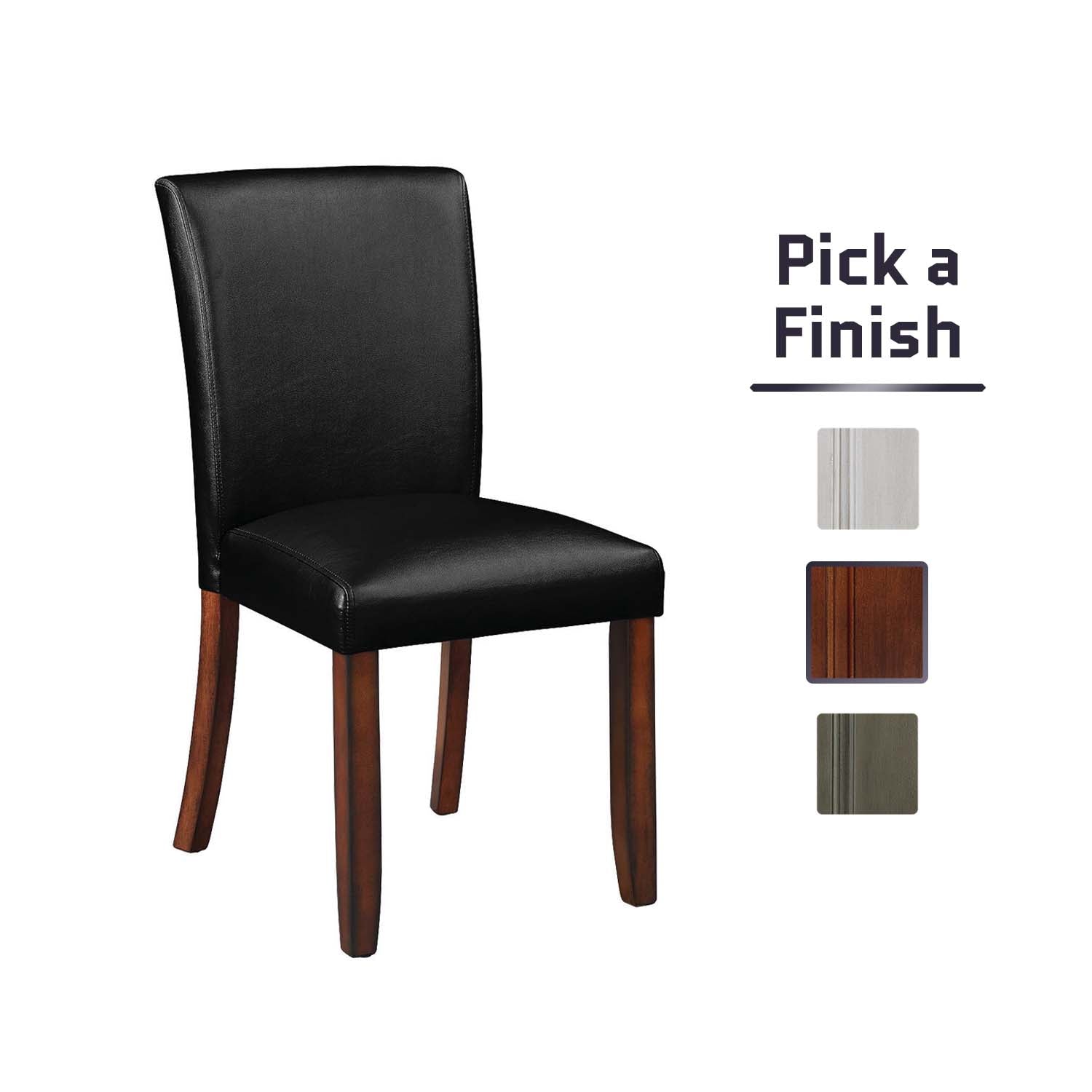 Sleek and stylish, this premium solid wood chair features a padded seat and a clean, armless silhouette. Available in our 6 signature finishes! This item is stocked in warehouse for prompt shipping and minimal process time (1–2 business days).Features