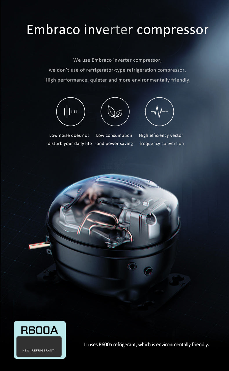 - Eco-friendly Embraco inverter compressor (low noise, low consumption, high efficiency)