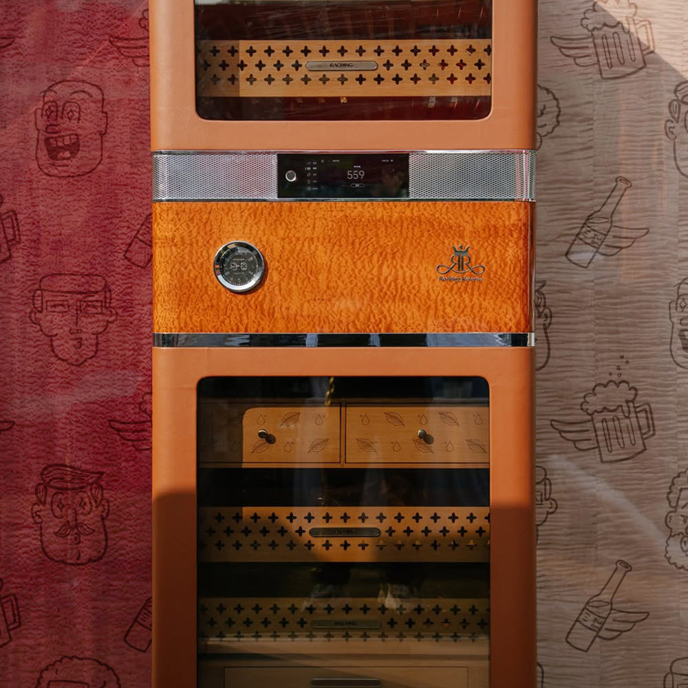 The RR980 is the flagship unit in Raching’s new Reserva line, representing the pinnacle of their 20+ years of innovation and expertise in the humidor industry. Building on the success of the MON series, the RR980 introduces quality-of-life improvements, cutting-edge technology, and a relentless focus on elegance.